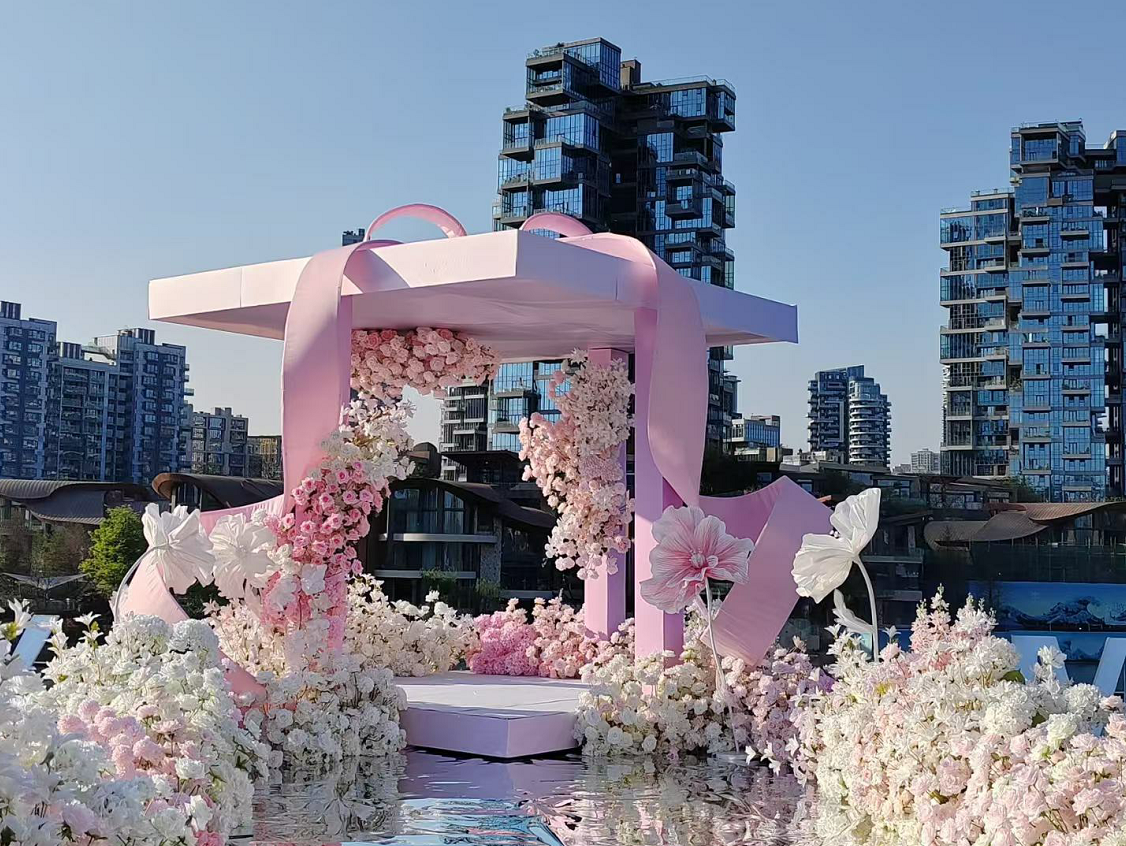 麓湖·麓客島婚禮設(shè)計靈感來源于“愛神丘比特”的心形,麓湖之心,首個國內(nèi)心形島嶼婚禮場域,擁有占地520㎡的花園草坪,可容納200余人,草坪能夠呈現(xiàn)婚禮、求婚、派對、寶寶宴、品牌活動、團(tuán)建、發(fā)布會等主題活動。全長1314米的丘比特之箭橋,連接著餐廳水杉旁、水杉旁白色行人橋下方湖水處和草坪處、白色行人橋橋、伊甸島碼頭、伊甸島碼頭旁草坪處、觀景玻璃橋、大馬路的過湖天橋等都是美麗的拍照打卡點,可以記錄下婚禮的美好瞬間。